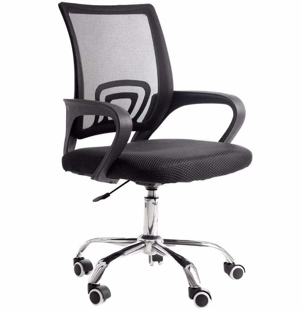 Cadeira De Escritório Prizi Essencial, Até 90Kg, Com Base Cromada, Preta